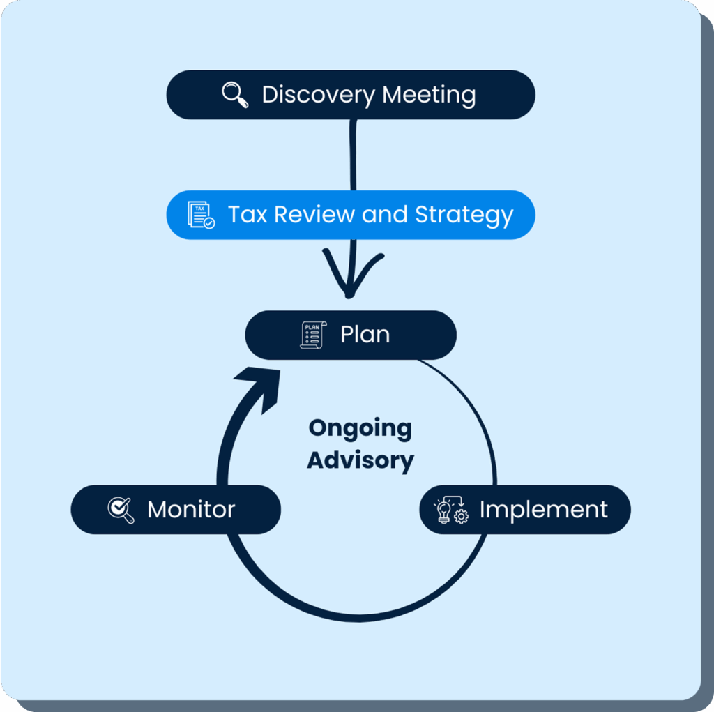 2. Tax Review and Strategy – Using the details from our meeting, your CPA prepares a personalized plan with tax strategies that fit your needs and show how they can benefit you.