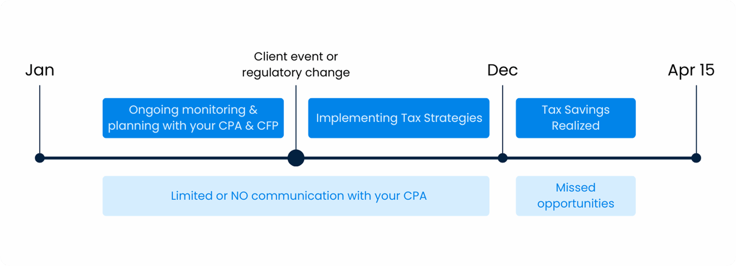 A proactive CPA stays in touch with you throughout the year and works closely with other experts, like a Private Wealth advisor, to suggest tax-saving strategies early enough for you to take action before the year ends.