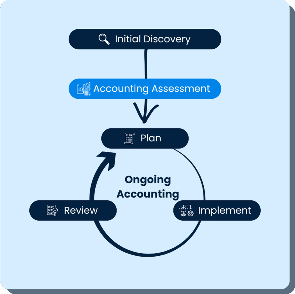 2. Accounting Assessment – Using the insights from the discovery stage, we prepare a tailored proposal and action plan to strengthen your accounting function, complete with recommendations and areas worth deeper review.